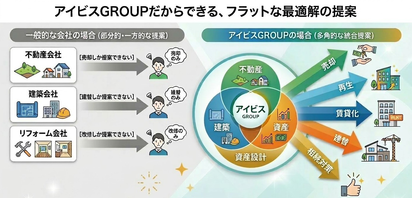 アイビスGROUPでは、不動産と建築の両方の視点から、