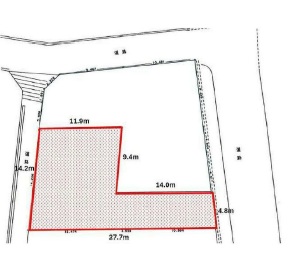 東側公道幅員約9.4m接面4.8m、西側公道約3.0m接面14.0m